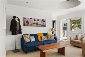 4 Bedrooms • 4 Bathrooms (3 full, 1 half) 4 Baths (3 full, 1 half) • Sleeps 1-9Just a 1/2 block (flat with sidewalks) from the beautiful Solana Beach shoreline and the famous Fletcher Cove Beach Park complete with a grassy area and playground, this spacious home is perfect for multigenerational families seeking the ideal getaway. With a beautifully designed main house plus a private guest house, everyone—from young kids to in-laws to grandparents, all can enjoy their own spaces and privacy. The home is thoughtfully designed for family gatherings, offers plenty of room to relax and make memories together and your furry friends are welcome too! Practice your game on the private putting green or watch the grandkids enjoy it. Relax and soak in the beach days, enjoy family fun as you settle into the laid-back coastal lifestyle. To top it off, endless shopping at the Cedros Design District, live music at the Belly Up, as well as coffee shops and restaurants are all just a few blocks from the house.
